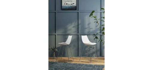 Clean lines and simplicity define the set of 2 Neo Bar Stools. The seats are made of molded PU in a bright finish. The legs are chrome-plated steel. This simple design will work with built-in kitchen counters and equally well as complimentary seating with a bar height table.