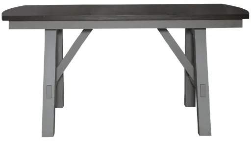 Feel at home with the Newport Gathering Table. Crafted with excellence using rubberwood solids and mindy veneers, this table features a Smokey Grey finish with a Carbon Grey top. The table has a fixed top with slightly rounded ends that adds dimension and design appeal, supported by splayed square block legs. Wooden peg accents on the legs add for a craftsman's feel. The center trestle on this table ensures stability. Feel comfortable and elegant at the same time with the Newport gathering table.