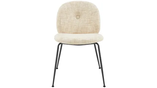 Nisha Side Chair is versatile as a side chair for the home office or as a dining chair. For a sense of delight and playful ambiance, opt for the Nisha chair series. Its rounded profile and single button detailing on the middle backrest brings softness, while the sleek metal legs lend a sleek vibe. Easy Assembly.