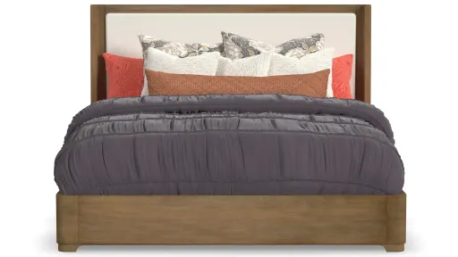 Simple geometry creates a look of timeless elegance for your bedroom with the Normandy Upholstered Bed. Inspired by European architecture, this bed offers a minimalist silhouette featuring an inviting, warm driftwood finish and plush, clean cream upholstery. Standing on a dignified, strong frame, this piece is sure to be a conversation starter. Regal comfort in a simplistic design sure to bring enduring style for generations. Bring it all home with Normandy.
