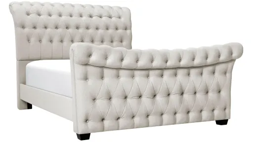 Rest your head in the lap of luxury with the Odette king bed. This stunning piece features a fully upholstered headboard and footboard with beautiful button tufting. The padded headboard makes it easy to sit up in bed to read or watch TV. Plus, its neutral upholstery looks great in any design scheme.