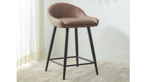 A modern expression of luxury, this Olga Counter Stool brings depth and intrigue to the kitchen counter. Its minimalist styled chair provides ultra-comfortable seating in its saddle brown faux leather upholstery, while its dramatically angled black legs raise the bar in any dcor.
