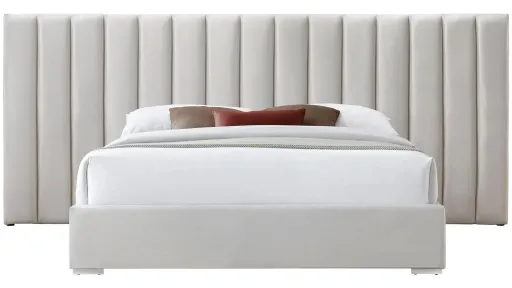 Pablo Bed is destined to become the centerpiece of your bedroom sanctuary makeover with its elegantly eye-catching design and soft cream velvet upholstery. The bed rests on sturdy metal feet with a gleaming chrome finish, helping to ensure its strength and resilience for long-term use. Pair it with other items in the Pablo collection for a cohesive and coordinated look.