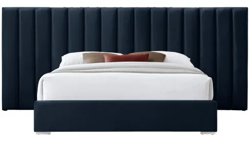 Pablo bed is destined to become the centerpiece of your bedroom sanctuary makeover with its elegantly eye-catching design and soft navy velvet upholstery. The bed rests on sturdy metal feet with a gleaming chrome finish, helping to ensure its strength and resilience for long-term use. Pair it with other items in the Pablo collection for a cohesive and coordinated look.a