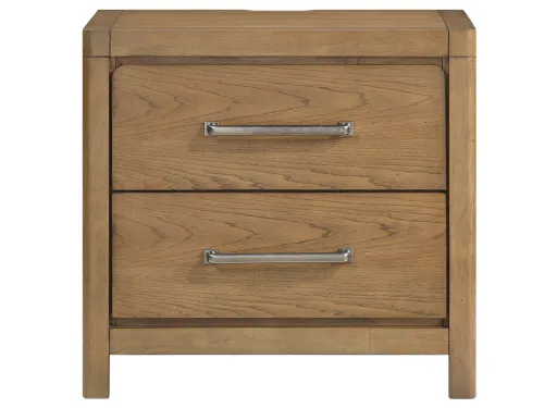 Elevate your bedside experience with this modern and highly functional Paola Nightstand. Crafted from a durable blend of hickory veneer, wood, and engineered wood, and finished in a warm light brown, this piece offers robust stability and a timeless aesthetic. It features two spacious dovetail drawers that glide smoothly on ball-bearing glides, providing ample room for your nighttime essentials. Sleek pewter-tone bar pulls adorn the drawers, adding a touch of contemporary elegance. For ultimate convenience, this nightstand is equipped with built-in power outlets and USB-A & C ports, keeping your devices charged and within reach. Best of all, it arrives fully assembled, allowing you to instantly enhance your bedroom with its practical design and sophisticated style.