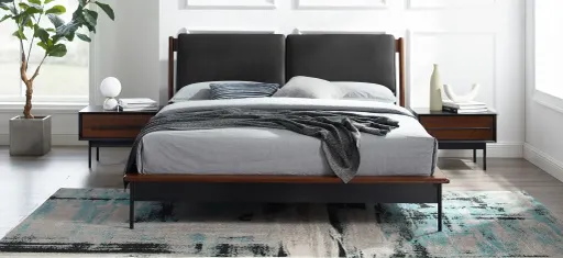 Create a clean, sophisticated look with the Park Avenue PU Platform Bed. The sleek modern design and simple clean lines of the Park Avenue platform bed features a craftsman-built frame in solid Ruby bamboo, with two removable back cushions adding a dramatic focal point to the headboard, angled for good looks and comfortable lounging in bed. Heightening Park Avenue’s upscale style is a slim black steel support and legs accenting the solid Ruby bamboo side rails and footboard. Sustainable and earth friendly, Ruby is not a surface stain, the color is the result of an innovative new process using earth friendly heat and steam, to entirely transform the solid bamboo material into Ruby’s deep red color. The Park Avenue platform bed is designed for use with a mattress only, which is supported with a solid bamboo European slat system, eliminating the need for a box spring, and providing constant ventilation for your mattress. Made using an eco-friendly, renewable resource harvested from fully sustainable and rapidly growing forests.