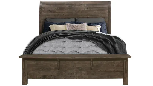 Upgrade your sleeping space with the Peter Bed. The sleek grey oak finish with charming farmhouse elements creates a warm and inviting atmosphere. The tall, slatted headboard and low-profile footboard with a shelf add a touch of elegance while providing practicality. The matching case pieces all sold seperately offer ample storage space, making it a perfect addition to any bedroom.