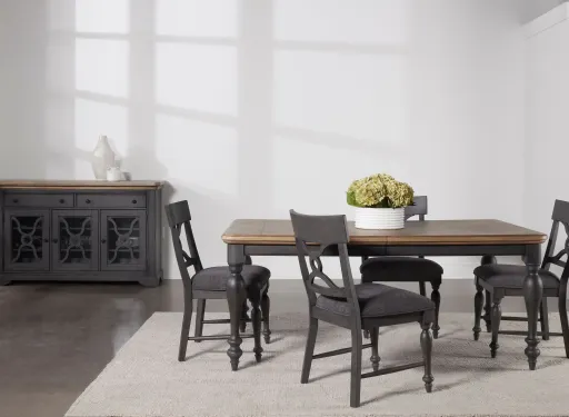 The two toned elegantly designed Pirro 5 pc. dining set becomes a rustic focal point instantly. This dining set will sure set a perfect tone for family gatherings and holiday feasts.