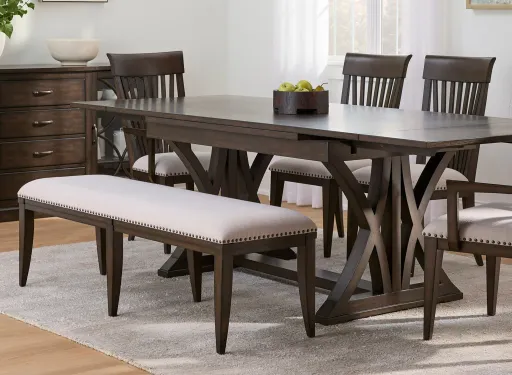 Every meal becomes special when served on this gorgeous Prescott Collection. The self-storing leaves let you extend the dining area for larger gatherings with family and friends, while comfortable chairs add to the functional and stylish appeal of this set. 7-Pc. Collection Includes: Prescott Dining Table, Two Prescott Arm Chairs, Two Prescott Side Chairs, Prescott Dining Bench, Prescott Sideboard