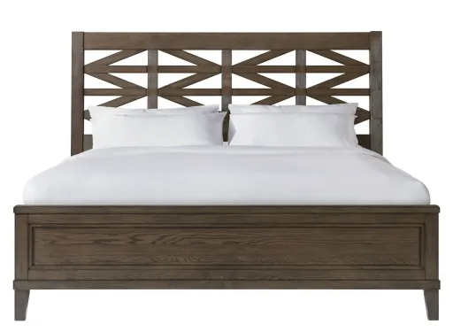 The lightly wire-brushed finish of the Preston Complete King Panel Bed is complimented by the antiqued bronze hardware and perfect for any home.