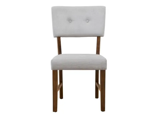 With its bold, clean design, beautiful wood grain and upholstered seating, the Pryce dining chair creates an undeniably elegant look in your dining room. Button tufting in the light gray upholstery of the side chair and a brown cherry finish add subtly chic detail.