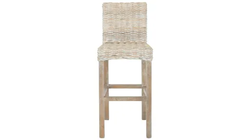 Designed to bring coastal cottage style to the table, this Rei Bar Stool embraces the art of relaxation. Its Parsons legs and rattan seat in a gray wash finish are perfectly styled for rustic dcor, suiting any color scheme with its soft neutral tones. Sized for average bar height countertops.