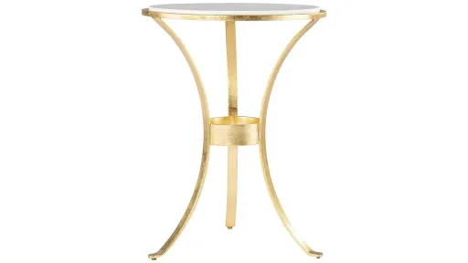 Reina Round Accent Table bring home classic style with this marble side table. Authentic white marble creates an elegant tabletop while the gold leaf frame gives your home a high-end feel. Hand-forged metal legs curve gracefully, crafting a stylish base. Place this transitional accent table in your entryway or alongside your sofa for a sophisticated upgrade to your living space.