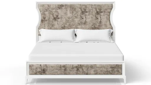 Introducing the Renascence Upholstered Bed, the epitome of modern urban elegance and refined luxury. With its exquisite pearlized white finish and stunning design, this bed transforms any bedroom into a stylish sanctuary. The focal point of this extraordinary piece is its headboard and footboard, adorned with sumptuous crushed velvet upholstery. The rich texture and captivating sheen of the crushed velvet add a touch of opulence and sophistication to the overall aesthetic. Sink into its plush embrace as you unwind and indulge in ultimate comfort. Soft curves grace every inch of the Renascence bed, creating a harmonious blend of sleek lines and gentle contours. The curved edges add an elegant touch, evoking a sense of grace and tranquility that perfectly complements a modern interior. Crafted with meticulous attention to detail, this bed is not only a feast for the eyes but also offers exceptional durability. The sturdy construction ensures long-lasting support, while the high-quality materials guarantee a bed that will stand the test of time. As practicality meets style, the Renascence Upholstered Bed boasts a versatile design that effortlessly adapts to various decor styles. Whether you prefer a contemporary, transitional, or classic aesthetic, this bed seamlessly fits into any setting, becoming the centerpiece that ties the room together. Transform your bedroom into a haven of elegance with the Renascence Upholstered Bed. Its modern urban allure, pearlized white finish, and indulgent crushed velvet upholstery create a captivating atmosphere of refined luxury. Experience the perfect blend of comfort and style as you indulge in the soft curves and impeccable craftsmanship of this remarkable piece.