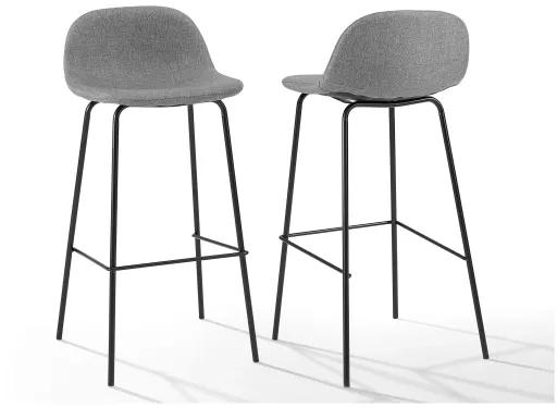 The Riley 2-pc. Bar Stool set combines modern and industrial aesthetics, creating versatile seating for a kitchen or dining area. Featuring upholstered bucket style seats on tapered steel legs, these stools offer comfort and a sleek footprint. Pair the Riley bar stools with a rustic bar height table or a contemporary breakfast bar for an instant dining upgrade.