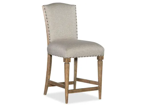 Embracing authenticity, the Roslyn County Deconstructed Counter StoolÕs exposed beams create a sincere, welcoming rustic chic style. Decorative nailhead trim on the Abbey Cream fabric cover and a Medium Pecan distressed finish complete the look. Brass covered footrest.