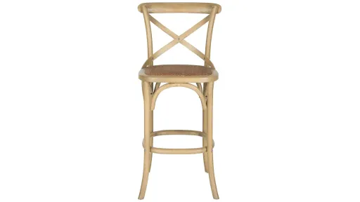 With its willowy frame and iconic cross back inspired by Michael Thonet's classic bistro chair, the Roxy bar stool by Safavieh is ideal in kitchen or great room. Crafted of solid American oak, including the X arch brace, this casual bar stool is finished in weathered oak with a seat of rattan caning.