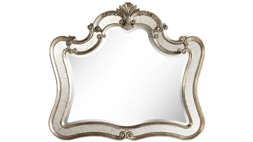 More magical than any mirror, mirror on the wall in a fairytale, let the Sanctuary bedroom dresser mirror transport you to a luxurious, uplifting place. With its classical, carved shape, the mirror is finished in elegance with a slightly aged patina. Pursue serenity at home. Create your own personal sanctuary, a special place where you can experience comfort within.