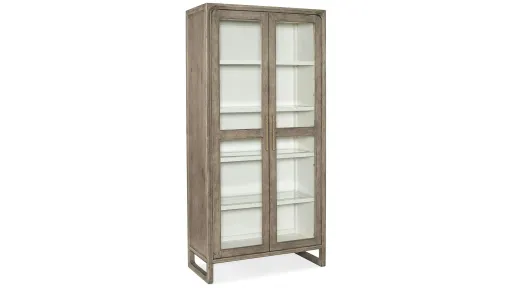 Designed to create a comfortable and inviting retreat within the home, the Sanderling Display Cabinet is defined by its casual finishes and variety of organic textures and materials that combine to deliver a relaxed aesthetic. Inspired by casual, waterfront living, the collection was designed to bring the relaxed aura of the outside in. White oak veneer delivers two key finishes, a whitewashed look and a weathered gray and is accented with sand blasted pine and soft white bronze metal details.