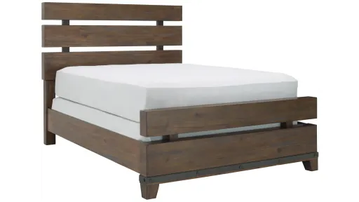 Set the stage for designing an oasis of comfort and appeal with the Santa Cruz king bed. A warm, medium-toned finish with beautiful acacia veneers characterize this bed's quaint beachside charm. The attractive panel-style headboard and footboard enhance the natural features providing an elevated, polished touch.