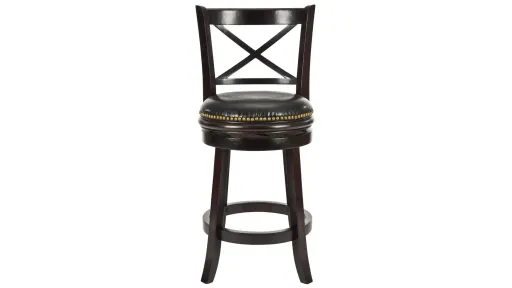 Traditional styling gets a luxurious update in this Sardinia Counter Stool. The classically-inspired cross back and gently curved legs are crafted of Malaysian oak in a rich cappuccino finish for a deep, dramatic look, beautifully pairing with a black bicast leather seat and brass nail head trim.