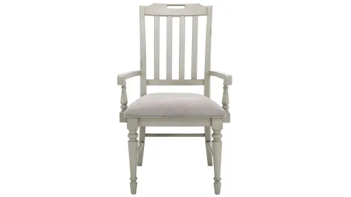 The Saybrook dining armchair creates the ideal atmosphere for everything from weeknight dinners to holiday feasts. This casual chair's attractive finish will brighten up your space. Turned legs show off just a touch of traditional style while the slat backs help to create a blended look of styles.