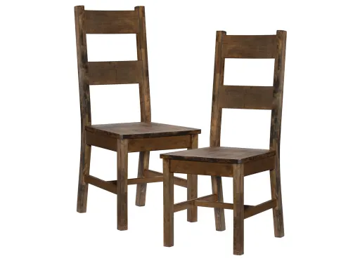 Classic transitional design serves as a base for the natural qualities of the solid wood utilized to create the rustic look of the Scenic View dining chair, set of 2. The rustic look of the side chair is enhanced by the burnished finish over the solid wood grain, allowing each plank to serve as a unique accent to the overall design of the piece.