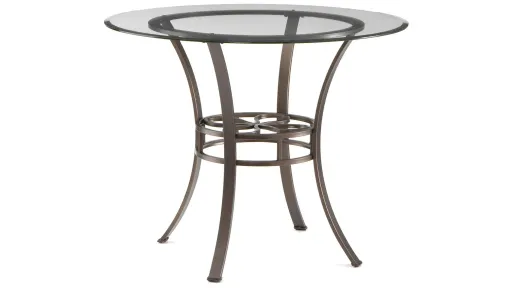 Scunthorpe Lucianna Dining Table perfect blend of styles. The metal tube frame is powder coated with a dark brown texture with hints of bronze highlights. Each of the four legs curves up from the floor to meet the circular table base. At their narrowest point, the legs support a circular lower shelf that is perfect for plants or extra dinnerware. The clear beveled glass top extends past the base to create a floating edge making it stylish and easy to clean. Add this table to your dining room for a casual atmosphere that blends all of your contemporary and traditional d_cor.