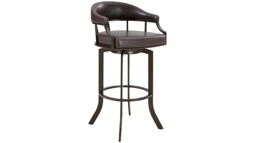 Shapiro 26" Swivel stool will add a touch of elegance to your home no matter the design theme. The soft faux leather upholstery allows easy clean up and swivels for optimal convenience. The finishes are Auburn Bay with brown faux leather, black metal with black faux leather, mineral finish metal with black faux leather or a mineral finish metal with Gray faux leather upholstery.