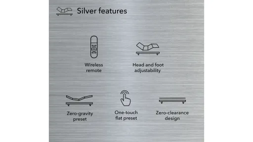 Pamper yourself and enhance the functionality of your mattress with the versatile baselogic Silver adjustable base from the makers of Serta and Beautyrest. Engage the Zero-Gravity preset for a calming, weightless feel that helps ease pressure points. A wireless remote easily raises and lowers the head and foot of the mattress so you can find the perfect position, while a preset One-Touch Flat button quickly and conveniently returns the mattress to a flat position. With 3-in-1 adjustable legs that help ensure the perfect height for your existing furniture, this easy-to-assemble base is a stylish grey color to complement your decor. Now sleeping, relaxing, or working from bed can be a luxurious experience.