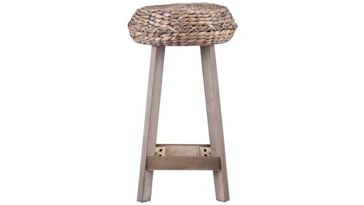 Soft coastal style comes to breakfast with the Southsea Counter Stool Set of 2. Gray-washed natural fibers weave a mesmerizing pattern into the round seat, mingling with the weathered gray base for an eclectic, monochromatic look. Round out spare seating with these backless counter stools in an eat-in kitchen, dressing area, or home office. Weathered, gray-washed finish, and natural hyacinth will vary adding unique style.