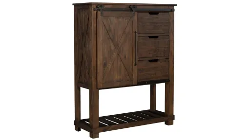 Our Sun Valley Gentleman's Chest evokes the rustic style of early America. The stylish x-framed sliding door is accented with industrial handles while a distinctive rustic timber finish highlights the natural character of solid pine. Each sturdy gentleman's chest provides ample storage and plenty of features.