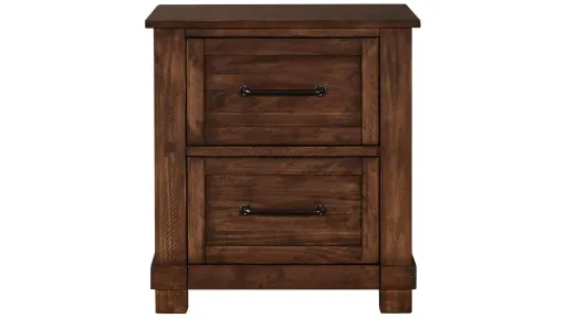 Our Sun Valley nightstand evokes the rustic style of early America. Accented with industrial handles while a distinctive rustic timber finish highlights the natural character of solid pine. Each sturdy nightstand provides ample storage and plenty of features.