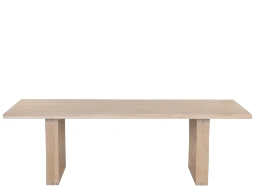 Thanus Dining Table features a solid light oak wood frame and top in a beautiful white wash finish. As wood is an organic, porous material, these pieces will contain natural variation of texture and may also exhibit fine indentations and cracks. Wood pieces will also display a disparity of colour and grain, and visible knots and burls that add to the character of each piece.