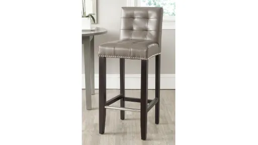 The Thompson Bar Stool offers classic design and sumptuous comfort for any interior. Featuring espresso finished birch wood legs and clay PU leather with nail head trim, it is sure to add a touch of elegance to your bar or pub table. With button detailing on the seat and back cushions, it offers fashion and function.