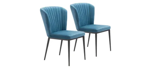 The Tolivere Dining Chair: set of 2 provides a flared back and channeled tufting gives this armless dining chair an art deco vibe. Pull it up to your table to create a swanky setting. Slim steel legs give it simple style and stability.