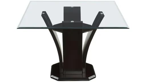 Venice 54" Glass Dining Table combines superb visual appearance and fine quality that you need in your dining area. Three distinct elegant, flared tulip bases support beveled glass tabletops on the square traditional dining height tables. The table is constructed of hardwood solids and veneers in a refreshing espresso finish.