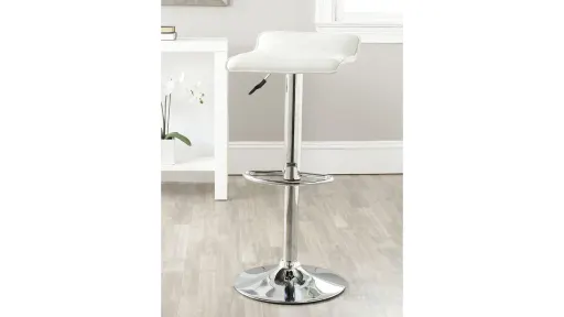 Strong enough to endure a lifestyle filled with late night toasts and midnight snacks, and sleek enough for sophisticated modern interiors, the white Verdery Bar Stool is crafted of chrome and quilt detailed faux leather swivel seat that adjusts from 22.4" to 30.9".