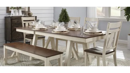 Refresh your dining space with the welcoming Vista Bay dining bench. With its stylish design and two-toned wood, this bench will look beautiful in your dining space for years to come.