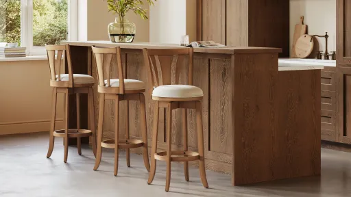 Raise the bar on casual dining and entertaining with the Winslow swivel barstool. A sculptural splat back creates a refined focal point while offering supportive comfort, paired with gracefully curved saber legs that give it a timeless, furniture-quality look. The 360-degree swivel function and softly upholstered seat invite lingering, making it as comfortable as it is stylish.