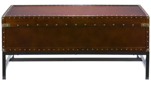 Woburn Storage Cocktail with a spacious hidden storage compartment and a restyled antique design, this cocktail table is not only beautiful, but functional as well. Studded accents line the edges of this sleek living room table to give it an extra element of design. A metal handle on either end of this table makes moving it easy as well, so try it in your living room or even at the foot of your bedroom for a new look. You may also pair this cocktail table with the matching end table for a complete update.