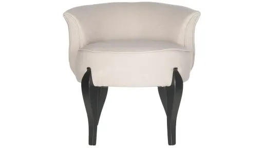 Signaling the return to glamour, the Wrenlow vanity chair by Safavieh conjures images of Hollywood dressing rooms. Curvy as a starlet, this diminutive chair is upholstered in taupe linen and accented with black cabriole style legs. Use the Wrenlow chair in the bedroom or master bath for a touch of luxury.