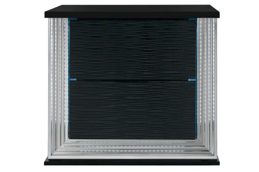 Introducing the Ylime Nightstand - a stunning addition to any bedroom. Crafted with a sleek, deco modern design, this nightstand features rich chrome accents and LED accent lighting. The matching case pieces and bed all sold seperately and add a touch of luxury and sophistication to the overall look.