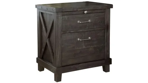 Modern conveniences include full extension ball bearing drawer glides for maximum storage capacity and smooth, efficient operation. Felt lined top drawers provide storage for valuables and the nightstand features a convenient a pull out tray. Choose from headboards with cross braced detailing or cushioned linen panels fashioned with nail head trim. Bed frames include 5 cross slats with center leg supports for use with a box spring and mattress.