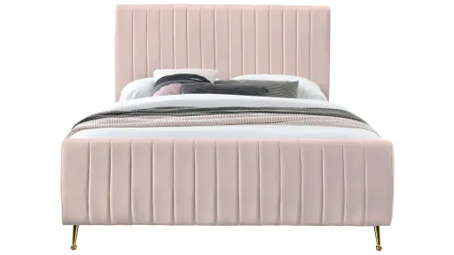 Zara Bed is padded to the max on its headboard and footboard for a look that is nothing short of upscale. The luxe design is amplified by the bed's velvet upholstery and its deep detailed channel tufting, which also serves to keep the interior padding aloft, full, and comfortable while you relax or unwind in bed. The bed has gold legs for a regal touch, and it comes with slats, so it doesn't require a box spring.