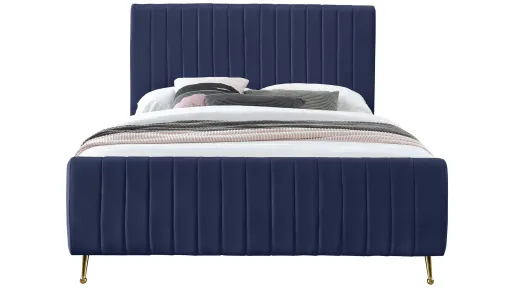 Zara Bed is padded to the max on its headboard and footboard for a look that is nothing short of upscale. The luxe design is amplified by the bed's velvet upholstery and its deep detailed channel tufting, which also serves to keep the interior padding aloft, full, and comfortable while you relax or unwind in bed. The bed has gold legs for a regal touch, and it comes with slats, so it doesn't require a box spring.