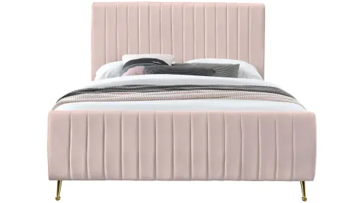 Zara Bed is padded to the max on its headboard and footboard for a look that is nothing short of upscale. The luxe design is amplified by the bed's velvet upholstery and its deep detailed channel tufting, which also serves to keep the interior padding aloft, full, and comfortable while you relax or unwind in bed. The bed has gold legs for a regal touch, and it comes with slats, so it doesn't require a box spring.