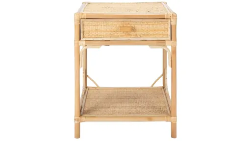 British Colonial style is reimagined for today's contemporary coastal interiors in this Zinnia Nightstand. Zinnia's bamboo style frame, open bottom shelf, and natural rattan drawer give it unique visual depth, while its matching natural finish ensures Zinnia compliments any room's color scheme.