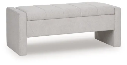 Whether gracing an entryway or sitting pretty in a main living area, this comfortably cushioned upholstered storage bench is packed with possibilities. Its clean, unfussy silhouette strikes a highly contemporary pose. Lift the hinged seat to reveal ample storage for your pillows, throws and everything in between.