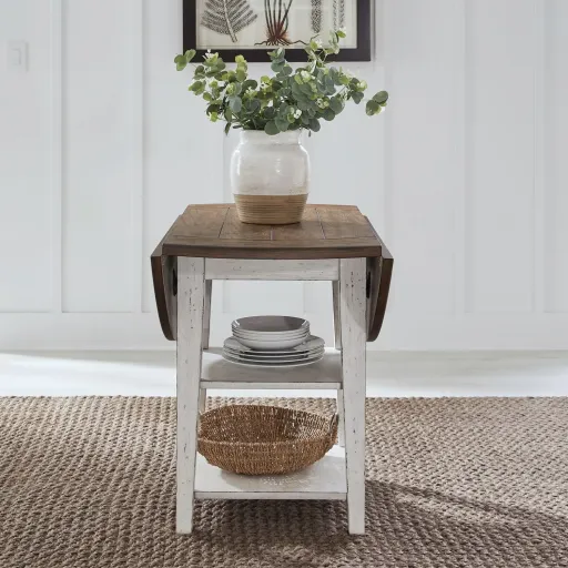 Al Fresco or dining in the outdoors brings to mind an open air natural feel. Al Fresco Casual Dining is a fresh approach to a casual rustic style. Two tone finish with tops of the tables in Graphite and the base in a Whitestone. Tops feature planked design with round/square peg accents. Tapered block legs carry the casual rustic theme of the group.